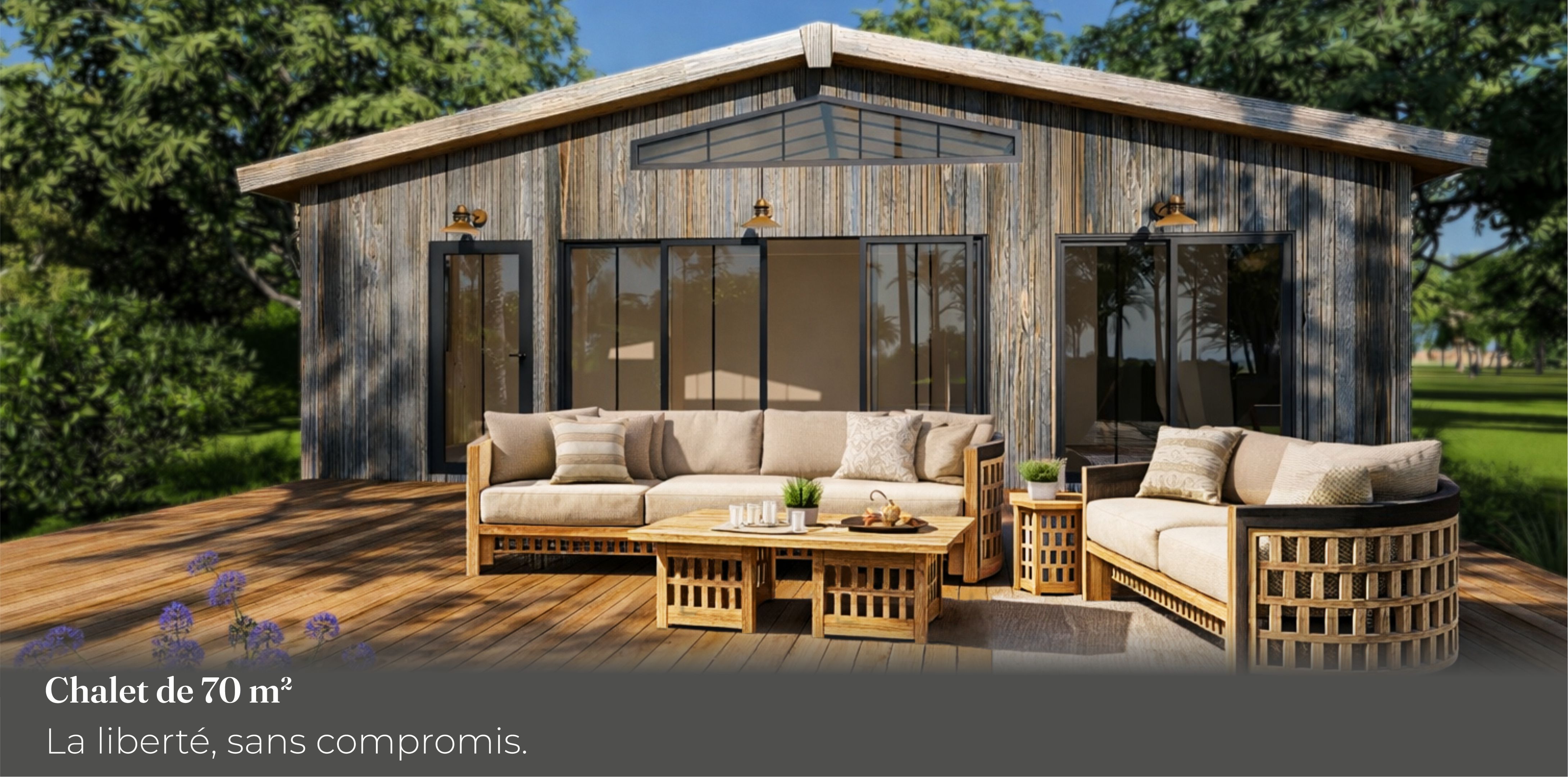 Nos chalets séduisent par leur flexibilité, leur modularité, la rapidité de mise en oeuvre et leur valeur préservée sur le long terme, gages d’un investissement sûr.